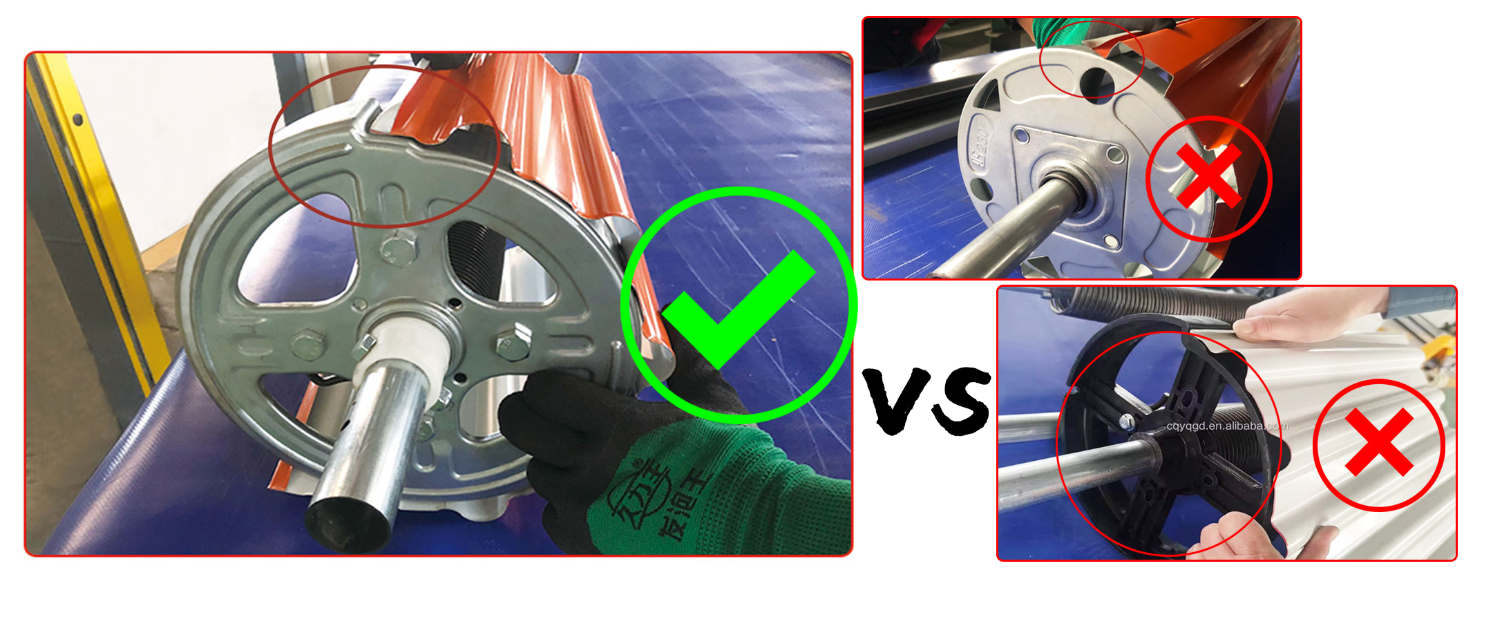 Perde tambura sabitlenir. Perde tambura sabitlendikten sonra mükemmel bir tur yapabilir, kapı perdesi düzgün bir şekilde yukarı ve aşağı yuvarlanır.